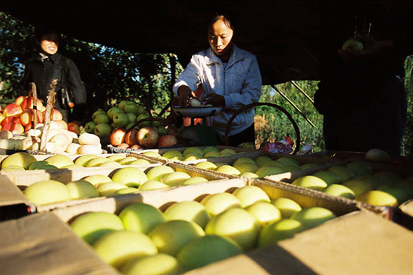 Along the highway, there're also many fruit sellers. Their apples and peaches are also sweet and cheap!!